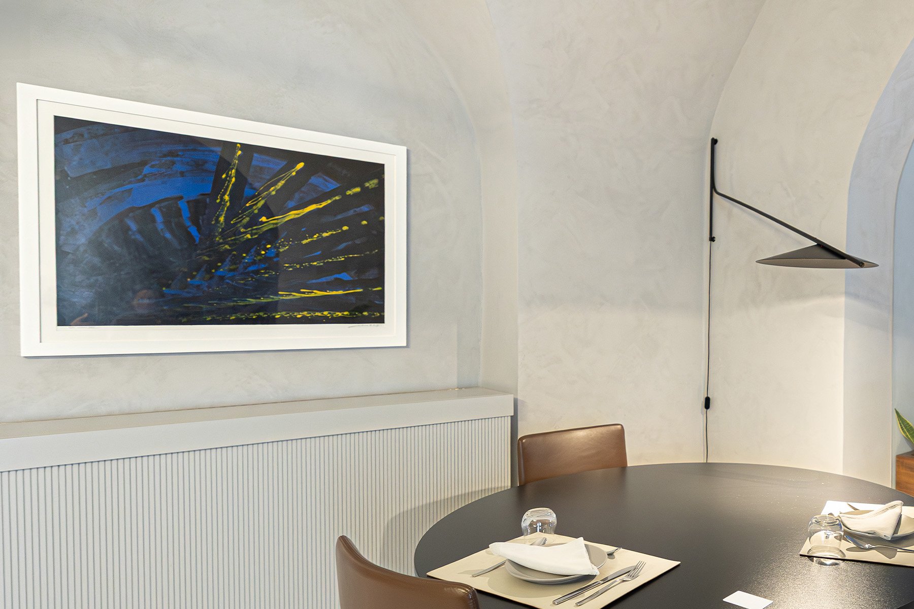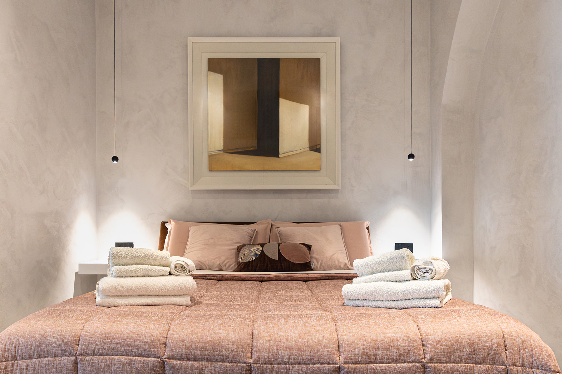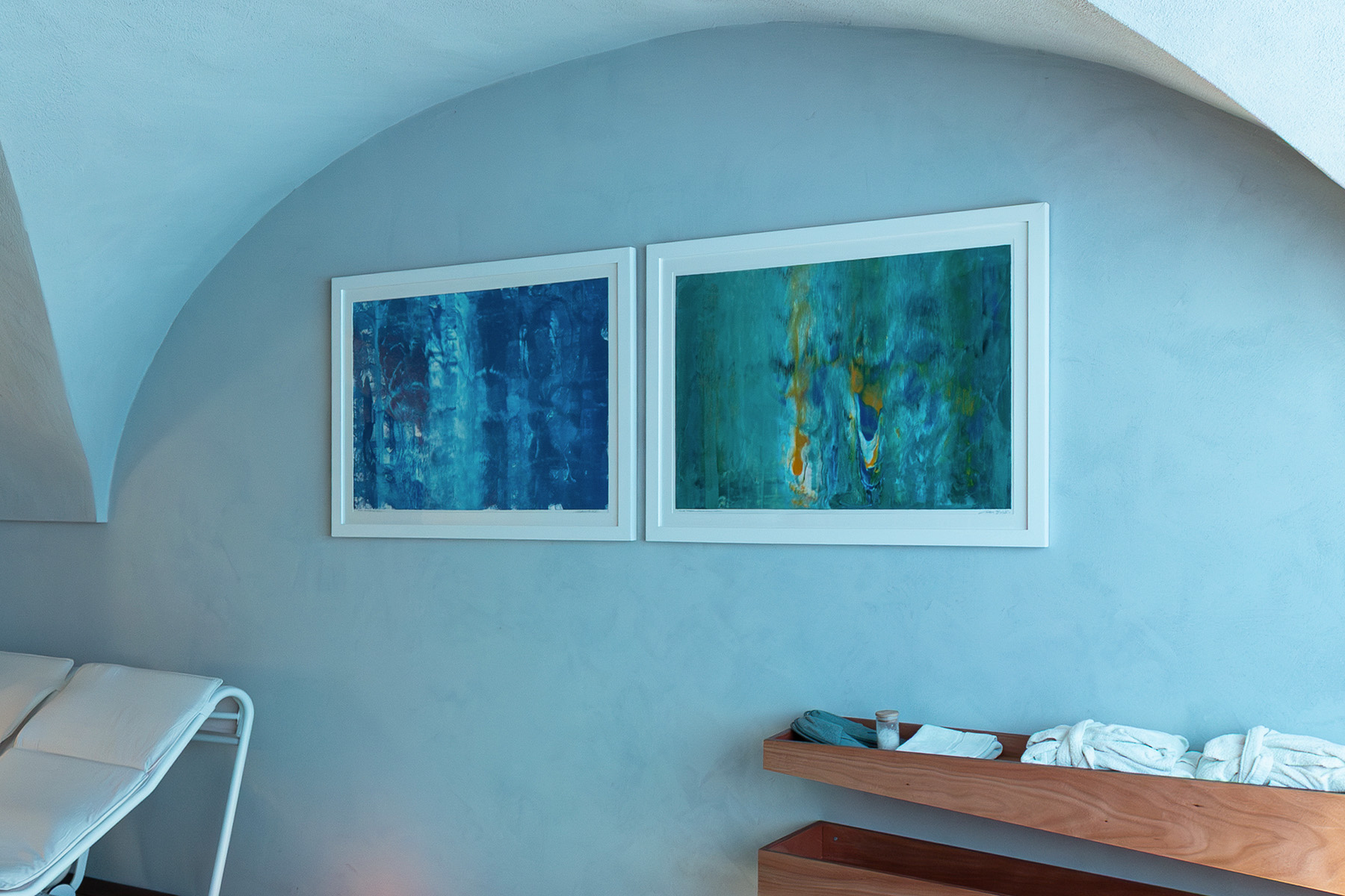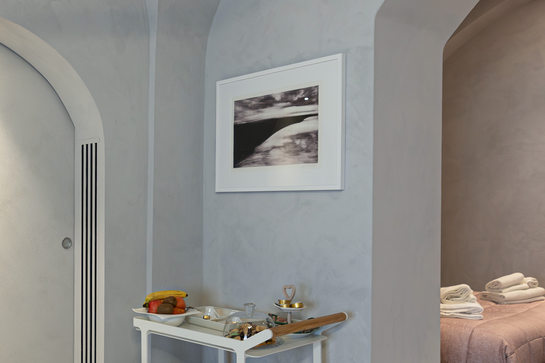 Calusca ha un approccio poliedrico e transdisciplinare: non si ferma alla pittura, ma sperimenta continuamente. Per questo nella suite troverai anche diversi libri e riviste curati direttamente da lui. Puoi sfogliarli sorseggiando un caffè, scoprendo cosa c’è dietro quei colori e quelle forme che ti circondano: è un lusso diverso, fatto di cultura e di un legame strettissimo con il territorio, che trasforma la tua vacanza in una piccola parentesi da collezionista d’arte.