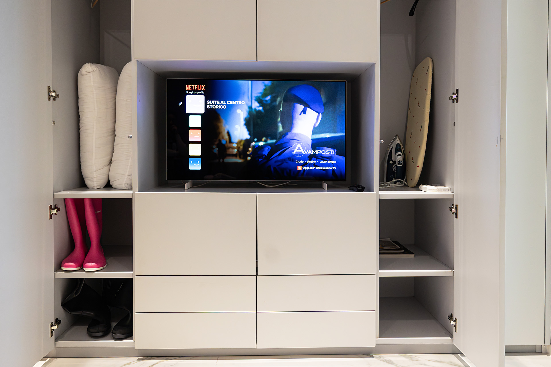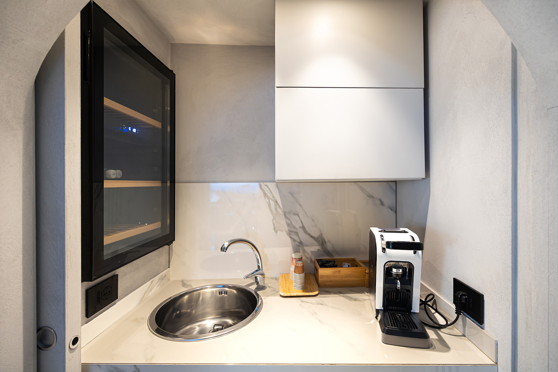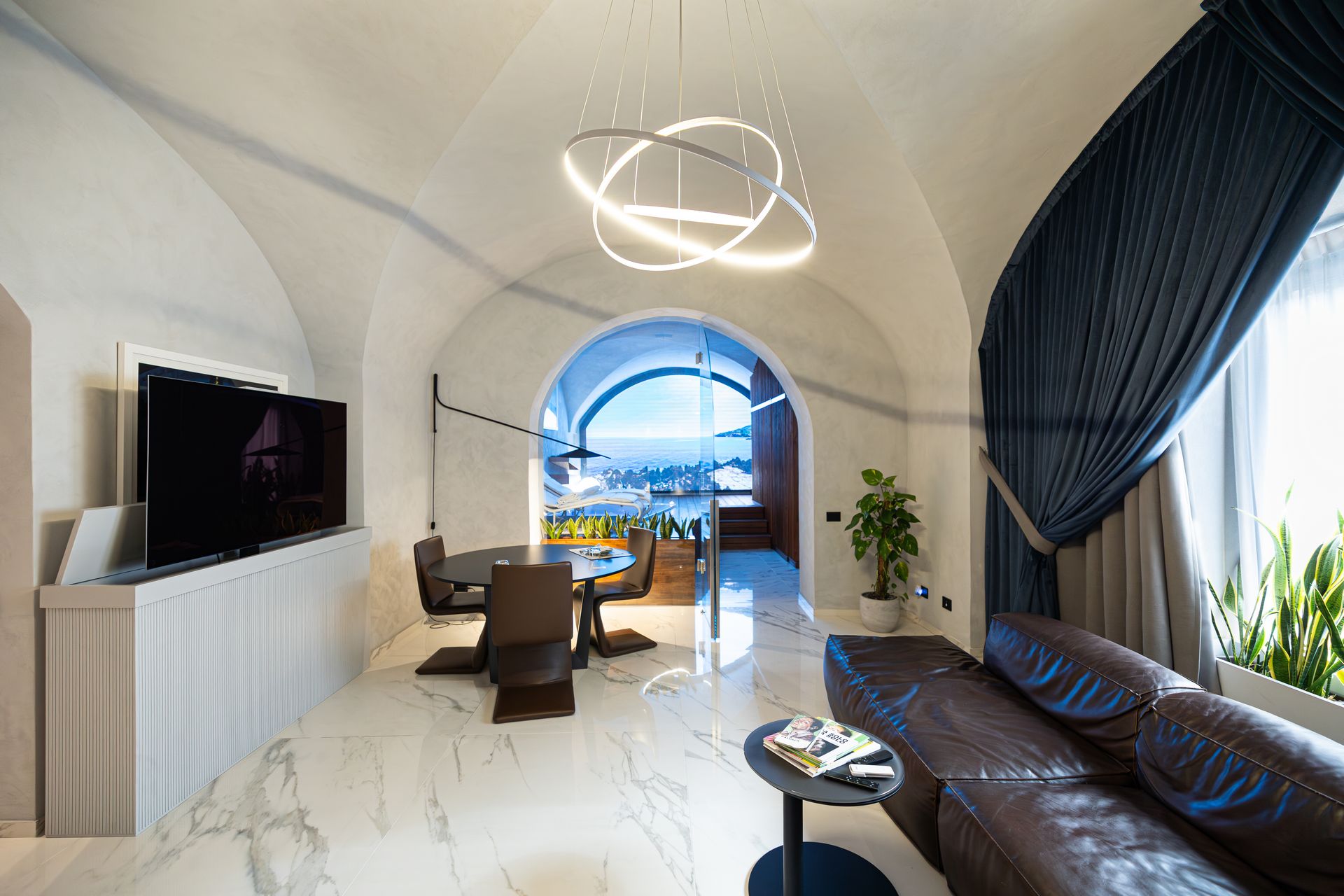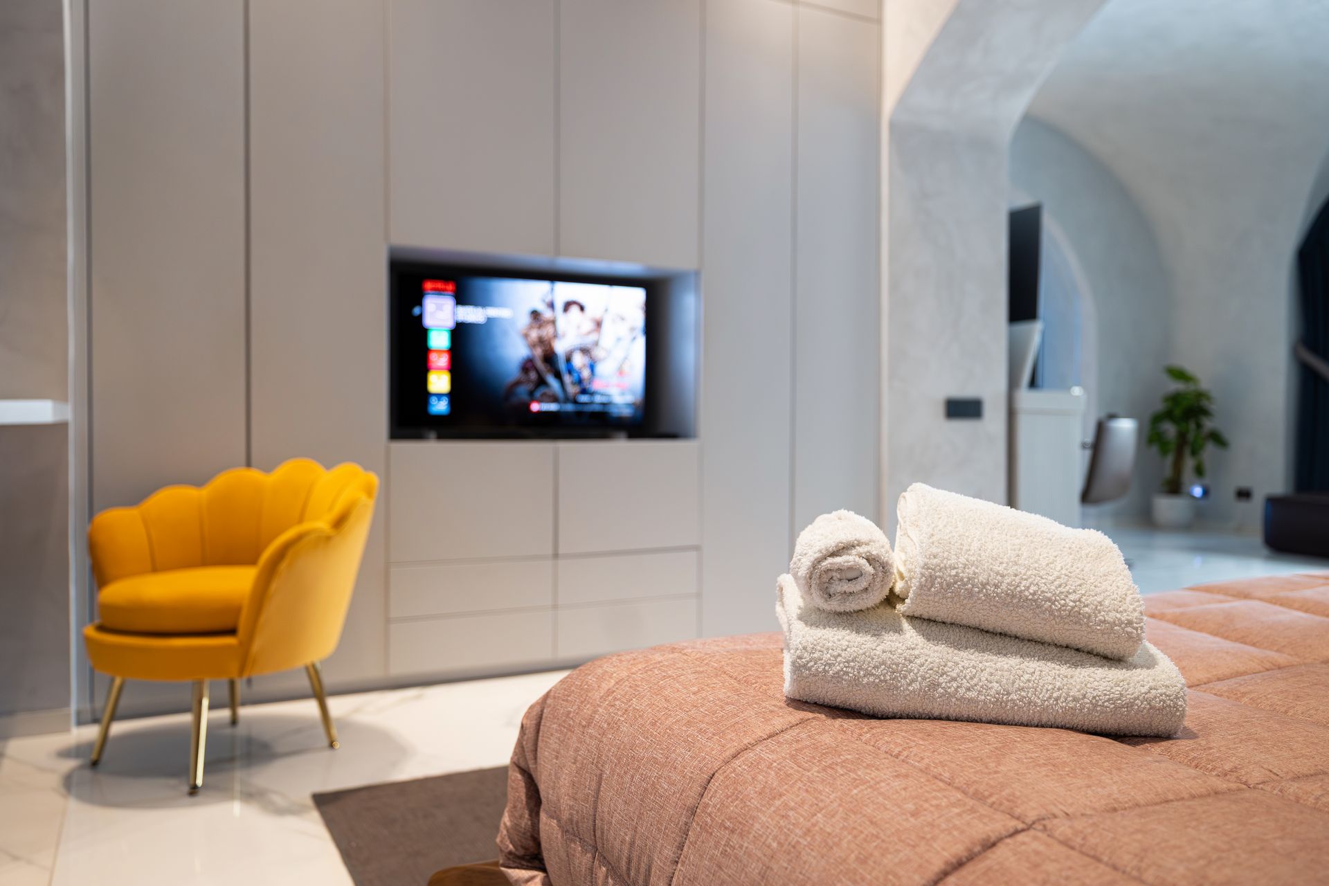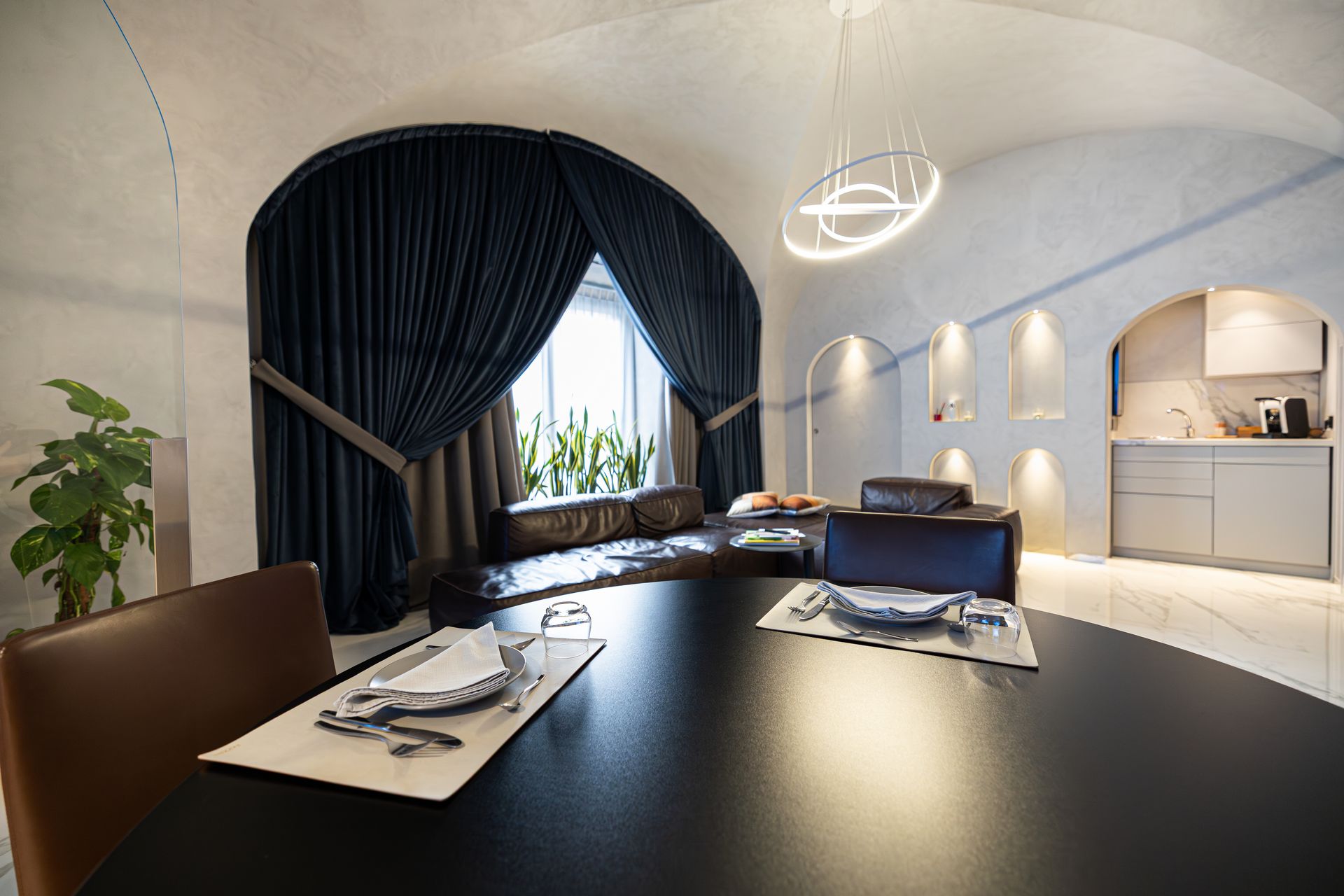 Suite al Centro Storico è un rifugio di 110 mq pensato per chi cerca spazio, stile e privacy. Ogni ambiente è progettato per offrire un’esperienza sensoriale completa, grazie alla luce dorata che riscalda l’ambiente, ai materiali scelti con cura e a un design che invita subito al relax.